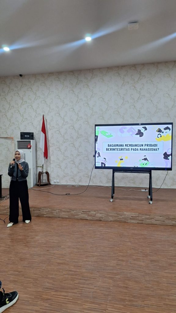 Untuk menambah semangat peserta, kegiatan diselingi dengan kuis interaktif yang bertujuan meninjau pemahaman mahasiswa terhadap nilai-nilai integritas. Selain itu, narasumber juga mengajak peserta melakukan refleksi terhadap berbagai pengalaman dilematis yang berkaitan dengan kejujuran, tanggung jawab, dan keberanian dalam mengambil keputusan yang beretika.